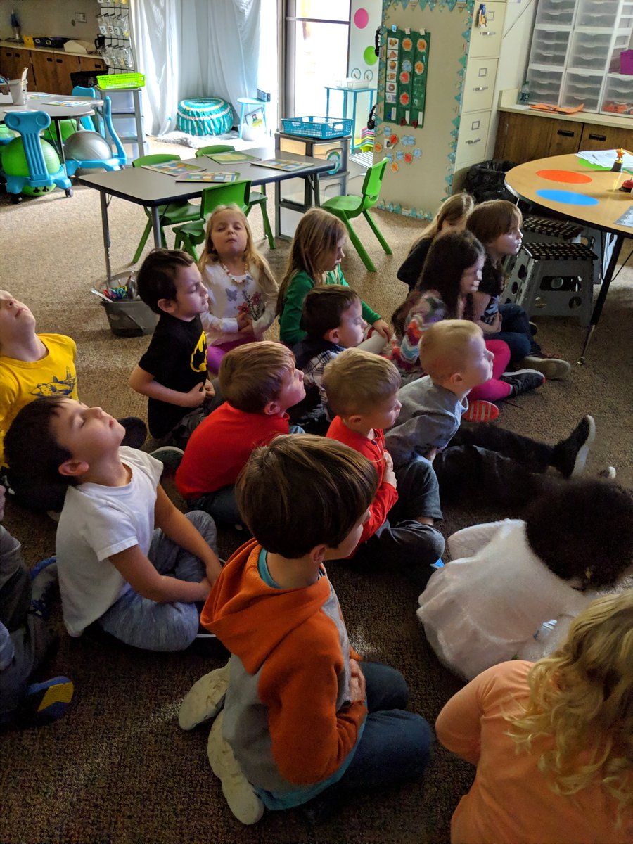 We met our new mindfulness friend, Flibbertigibbet during our Mindfulness before Math time. We've been practicing mindfulness right after lunch so we can relax from the excitement of the cafeteria before putting our math minds to work. Flibbertigibbet was a hit!