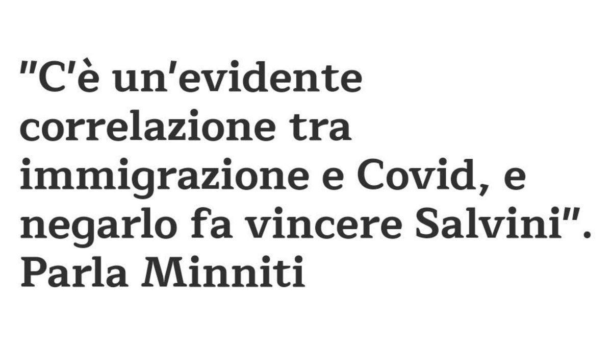 #Minniti: “C'è un'evidente correlazione tra immigrazione e#COVID19, e negarlo fa vincere Salvini". Piuttosto, negarlo mette a rischio la salute degli italiani e rischia di paralizzare per sempre la nostra economia.pic.twitter.com/EKbfeDxYMA