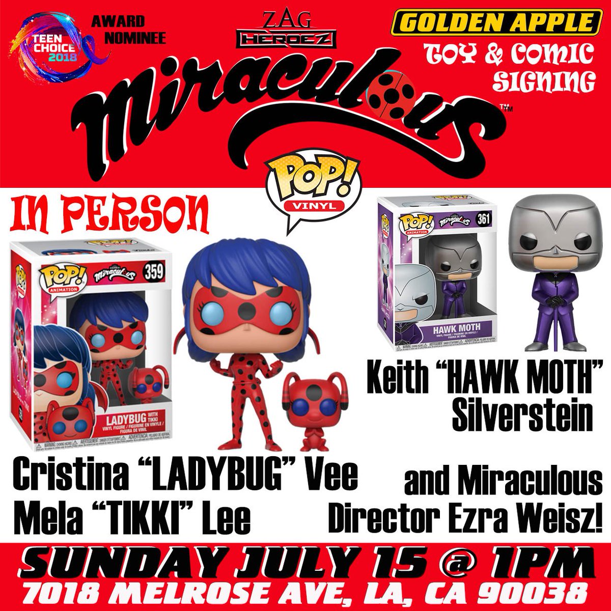@GAppleComics on Melrose today at 1:00pm!#MiraculousLadybug#miraculousladybugseason2#hawkmoth#ladybug#tikkipic.twitter.com/uDku0p52E5