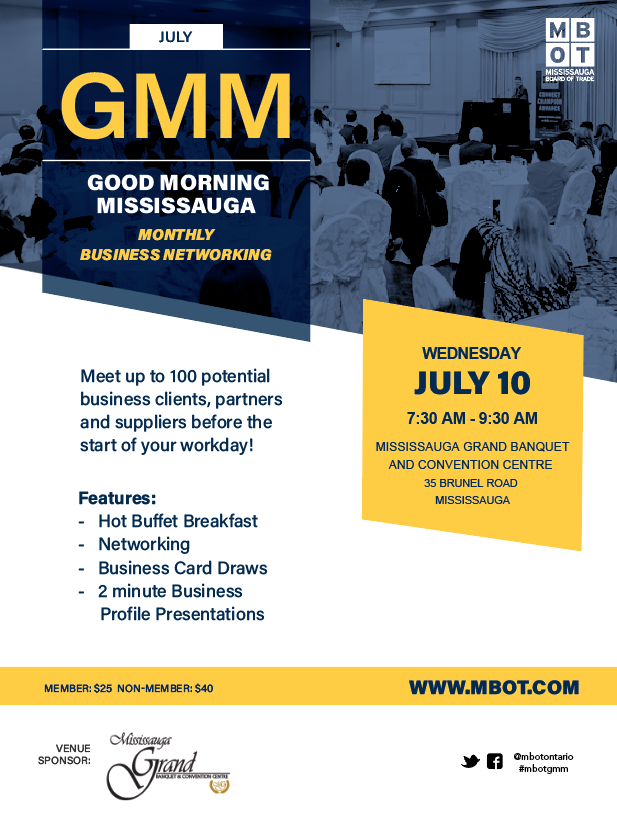 #mbotgmm to connect w 100+ biz professionals in#Mississauga Details: https://bit.ly/2XYmUdL Includes: Buffet breakfast + Networking + Biz Profile Presentations & Door Prizespic.twitter.com/A3sfxoro64