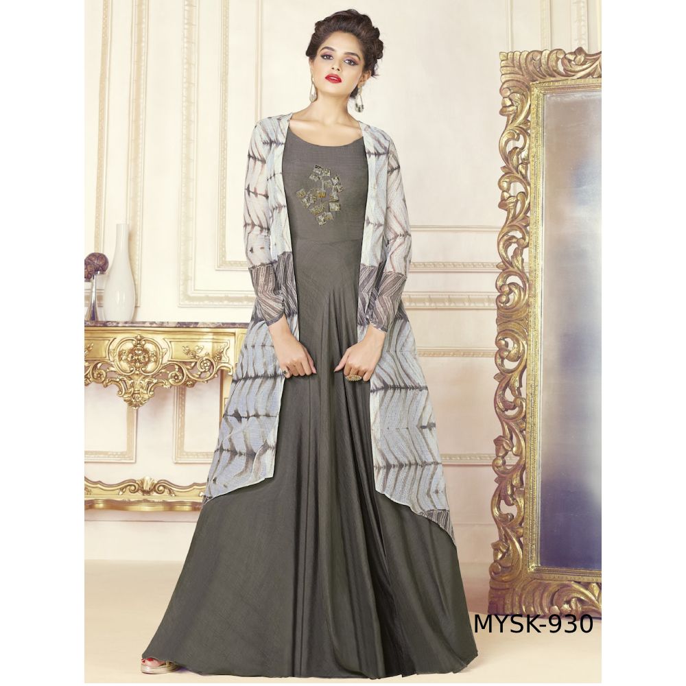 Off White & Grey Printed Trendy Gown Check here : http://bit.ly/2OwIYY8