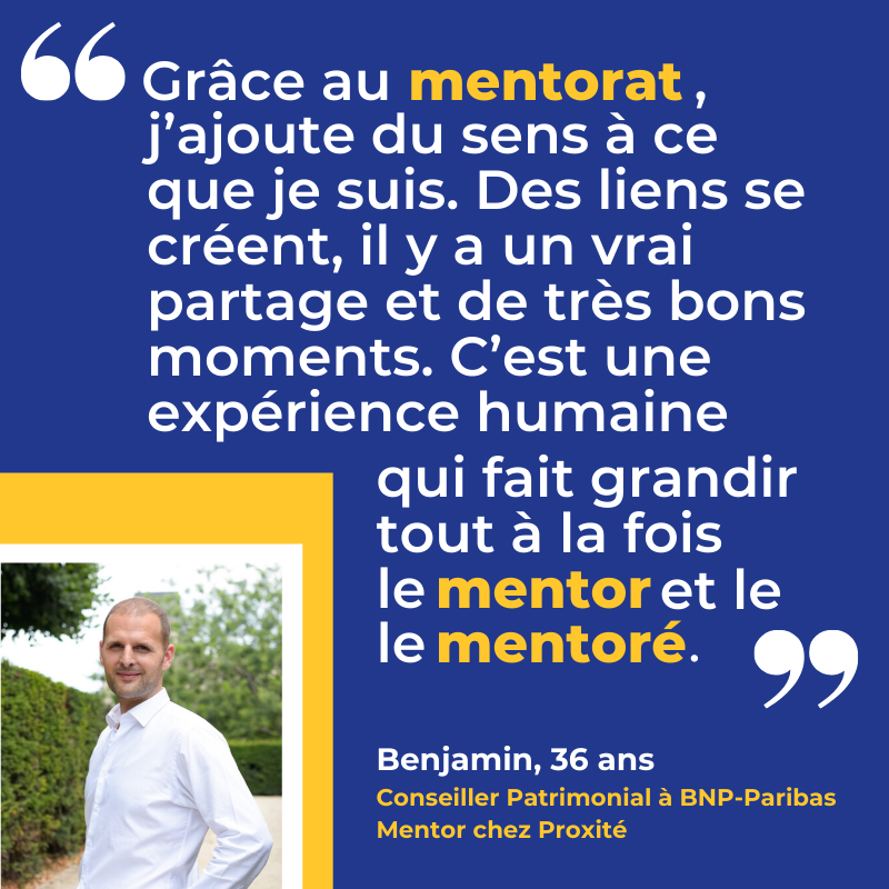 #MoisduMentorat se termine dans quelques jours, mais l'action de nos mentors continue tout au long de l'année ! Découvrez le témoignage de Benjamin, mentor chez Proxité.