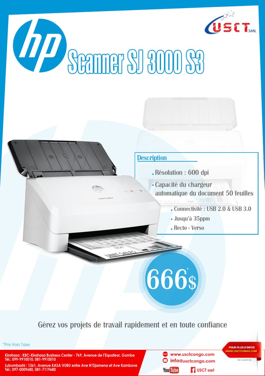 USCT | MonCongo Gérez vos projets de travail rapidement et en toute confiance grâce au scanner HP SJ 3000 S3 Tél : +243-99-9910010 / +243-81-9910010 Voir + : http://ow.ly/ozRy50vv7U6 . .