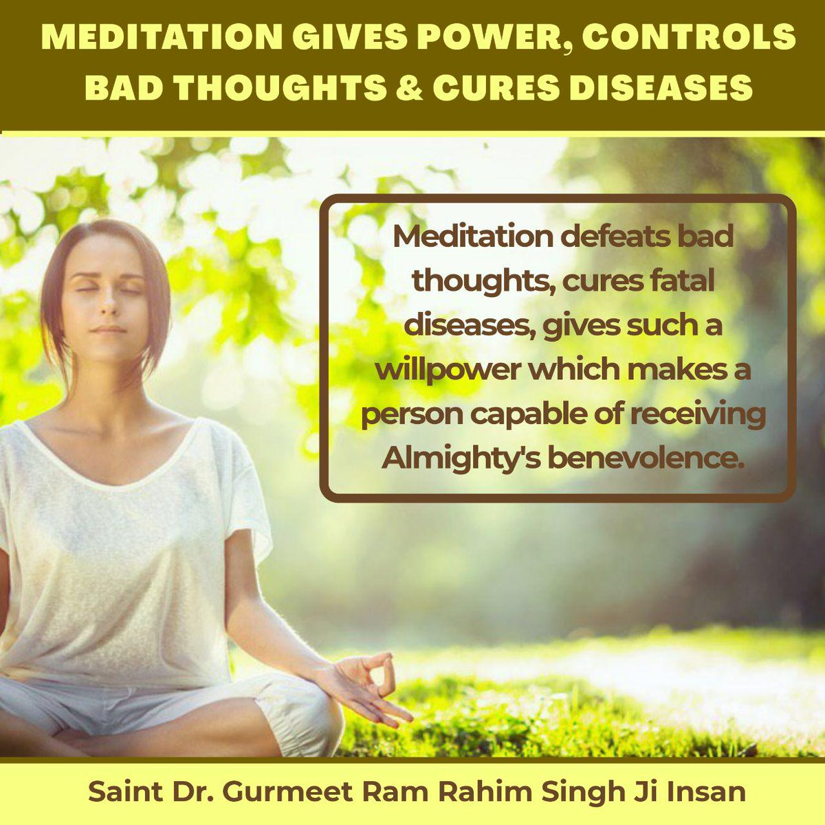 #MondayMotivation, do Method of meditation daily to experience eternal happiness. Saint Gurmeet Ram Rahim Ji encourages all to meditate regularly. pic.twitter.com/yRf0aU6yYD