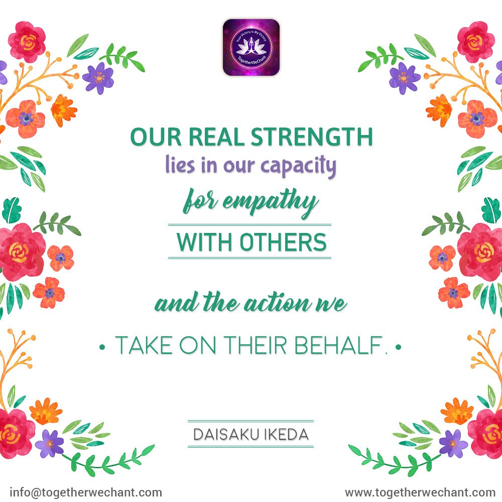 #MondayMotivations#TogetherWeChant Where does our Real Strength lie? In our capacity for Empathy with others and the Action we take on their behalf! Let's not shy away from this ever, as we chant#NamMyohoRengeKyo#BuddhismForHappiness#DailyGongyopic.twitter.com/jvyUDbqySM