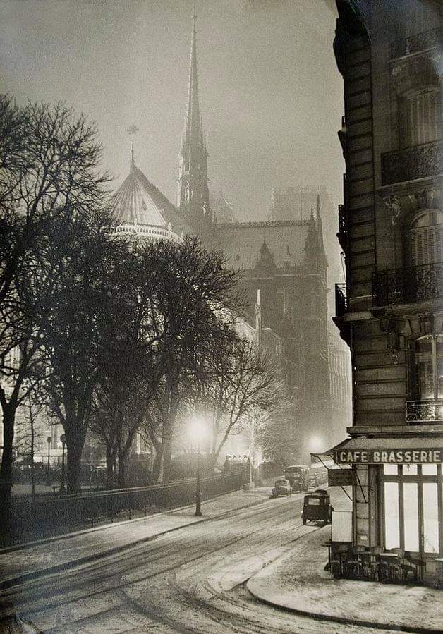 "#Notre-Dame un Soir de Neige",#Paris, 1953#Photo by Albert#Monier