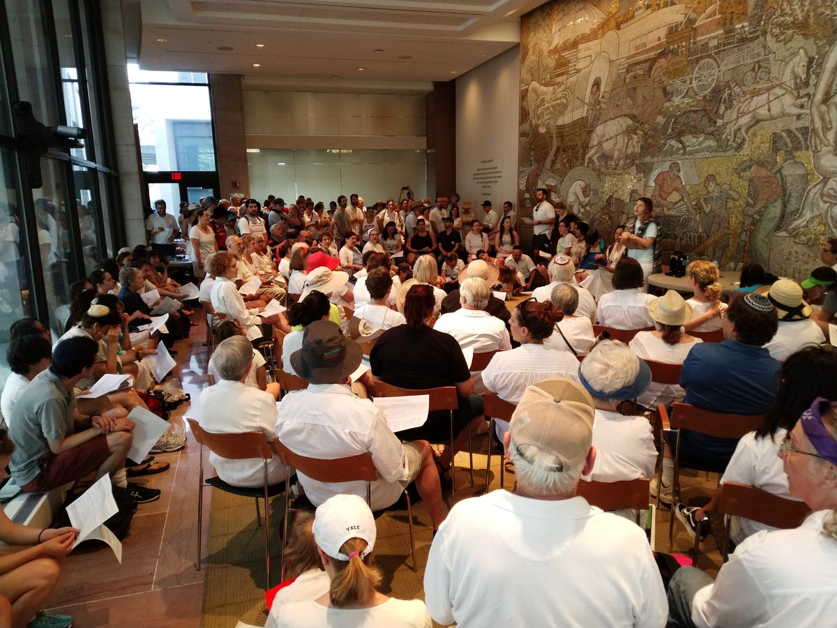 Unprecedented coalition of Jewish organizations and synagogues are now protesting outside the ICE offices today against Trump's racist immigration policies and the use of children as pawn.