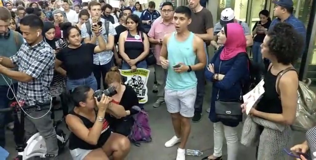 NOW at LGA airport. These are 7 of the 1000s of children separated from their families by the Trump administration. We're here to show that they're not alone. We're here to resist. We're also on the verge of tears.