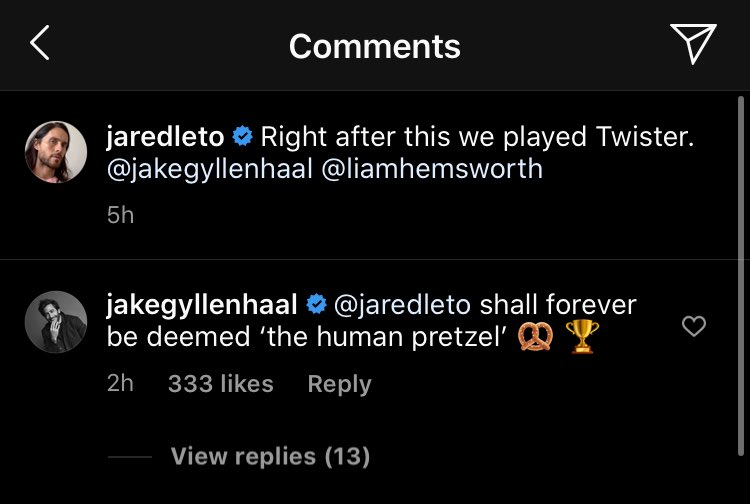 | Jake Gyllenhaal commented on Jared's Instagram post.