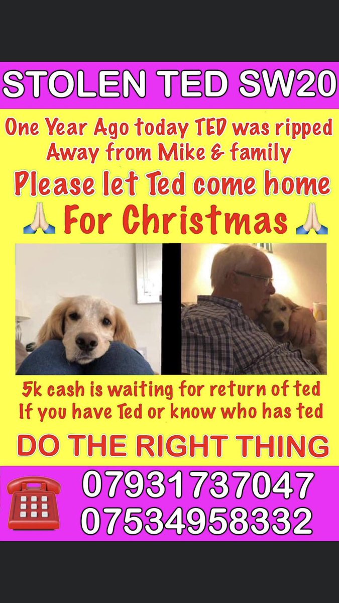 Where is Ted ?? Ted was stolen on 15th December 2020 after his owner was punched to the ground