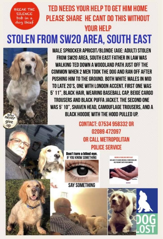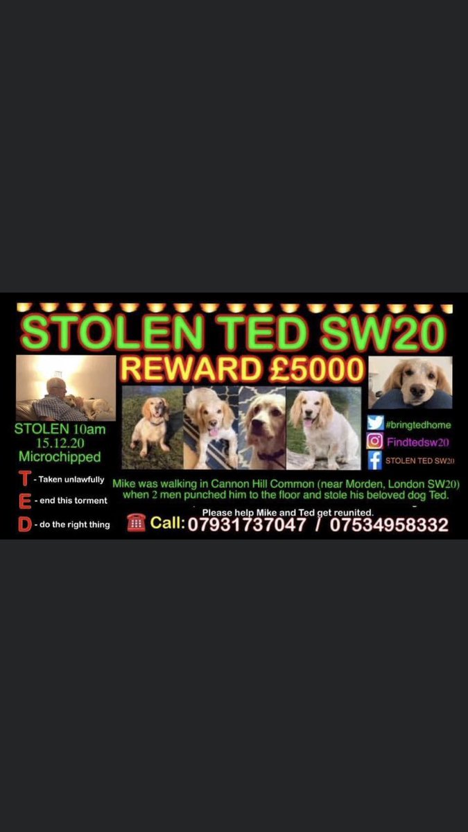 #Ted VIOLENT ASSAULT#CannonHillCommon nr#Morden#London#SW20 15/12/2020 2 men punched owner to floor & stole his#Ted. If you get offered a white and apricot sprocker dog like Ted please let the police know.@Lorrain90964806@veryluckypugspic.twitter.com/3CVYtPDxOC