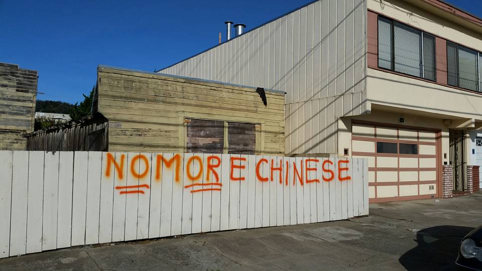 Anti-Chinese tags all over SF. Let's go fix this hot mess with some street art.