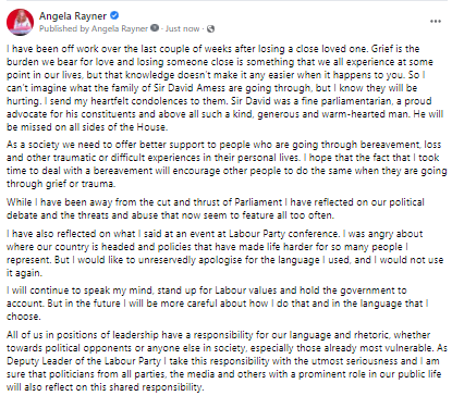 @AngelaRayner’s ‘scum’ comments. So, now that she’s apologised, in#moreincommon spirit I say good on her for doing so, and that the abuse and death threats she’s received are totally unacceptable. https://www.bbc.co.uk/news/uk-politics-59081482 … -