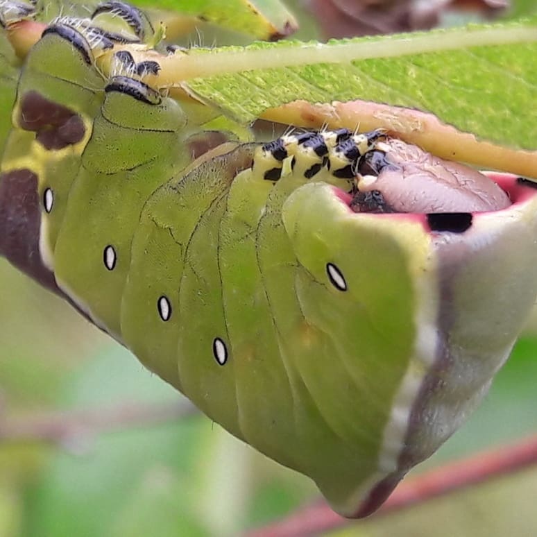 Puss Moth Caterpillar. Bizarrely I just caught sight of the face as I walked past the bush.