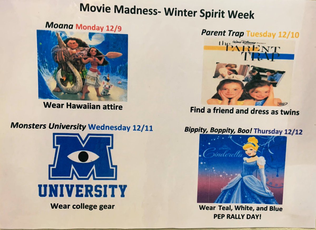 Students, don’t forget tomorrow kicks off spirit week with Moana Monday!! You recieve a live school point for everyday you participate!