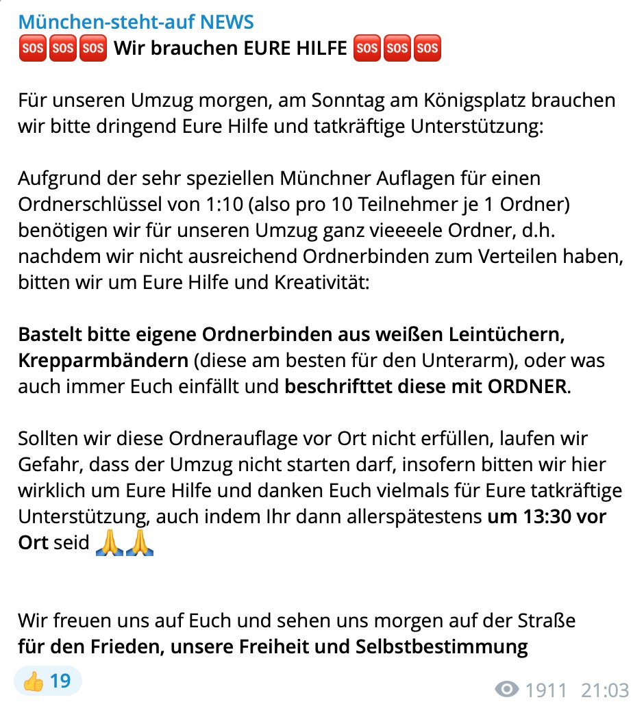 #Muenchen Sonntags-Umzug von#MuenchenStehtAuf FINDET STATT Ablauf: Aufstellung ab 13 Uhr Start 14 Uhr Schilder gibt es wieder vor Ort. Bitte bringt, sofern vorhanden, eure Ordnerbinden wieder mit.#muc0603 pic.twitter.com/HZ4jhaUK9vShow this thread -