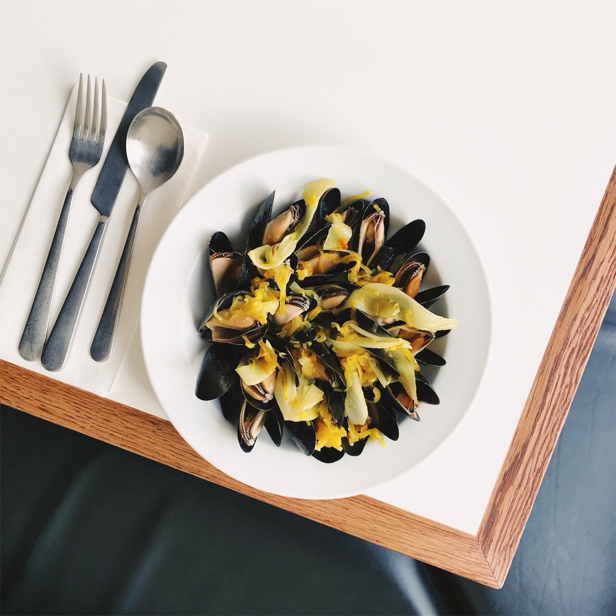Mussels, saffron, fennel and preserved lemon on for lunch today