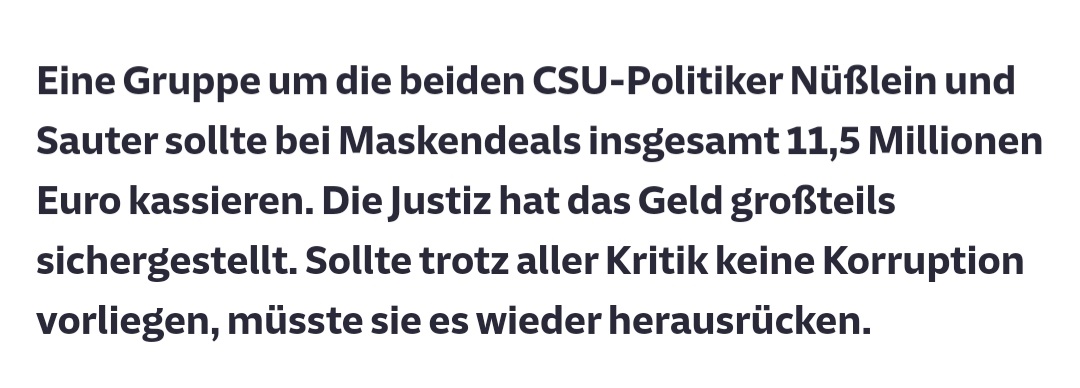 #LaschetvsSoeder. Aber bitte nicht vergessen, welche korrupten Parteien beide vorstehen.#Nuesslein, der bis heute Bundestagsabgeordneter ist, wollte sich über Maskendeals wohl mit 11.5 Millionen (!) Euro bereichern.#csukorruption pic.twitter.com/eBk3aQDVKA