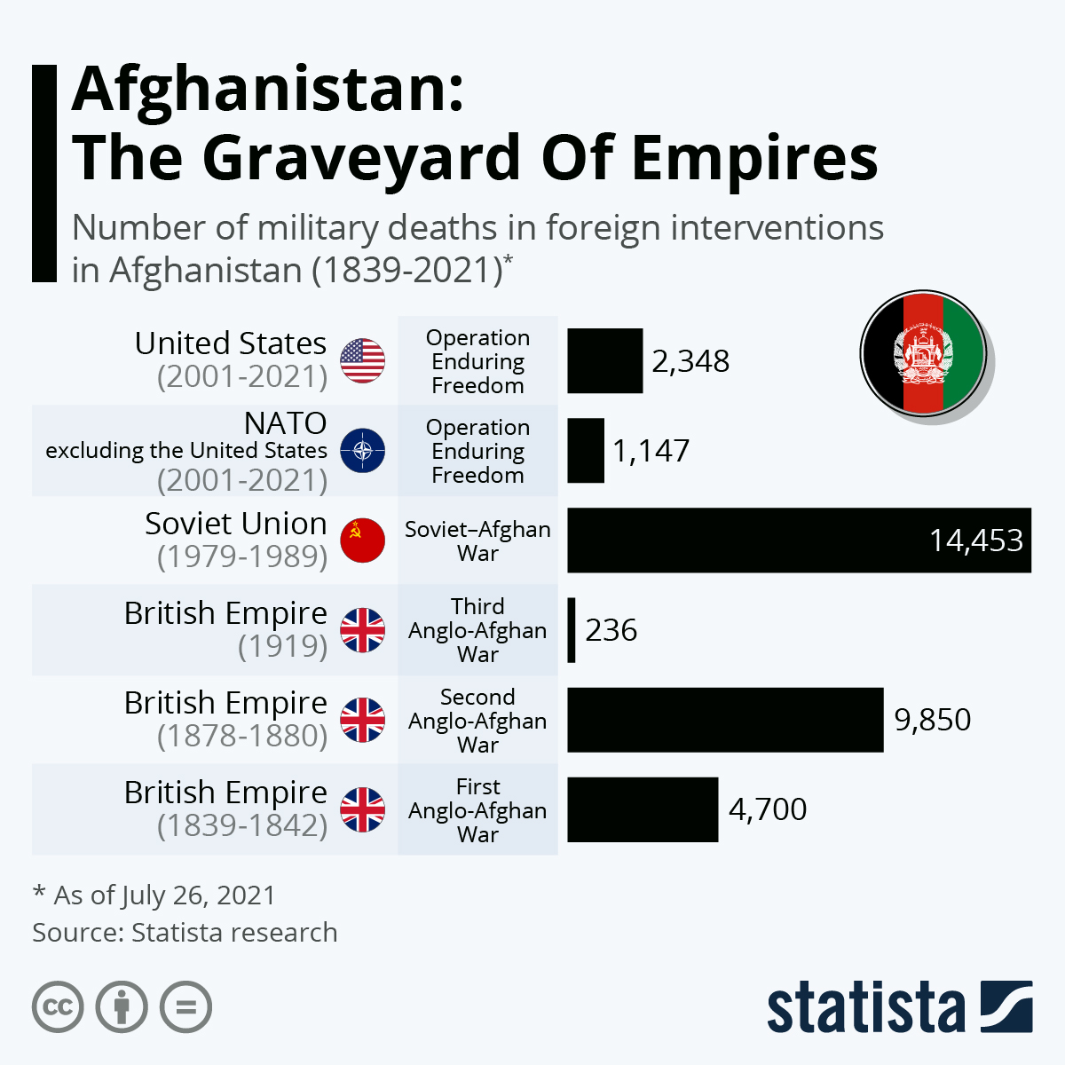 #US AND#NATO accelerated their withdrawal from#Afghanistan earlier this year, however, it's by no means the first superpower to get bogged down in chaos before eventually withdrawing from a country dubbed "the graveyard of empires" for good reasons. https://www.statista.com/chart/25400/military-deaths-in-foreign-interventions-in-afghanistan/ …pic.twitter.com/bLkLogqnlS