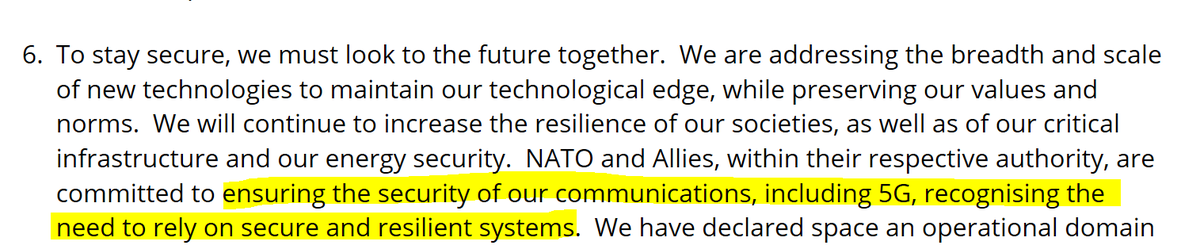 #NATOSummit statement is out and it explicitly mentions#5G security! It's the quintessential transatlantic issue & a bellweather for how democracies will handle China's techno-authoritarian rise. Congrats to@jensstoltenberg,@USNATO, et al. for getting this on the agenda.pic.twitter.com/S18DqJrMFO