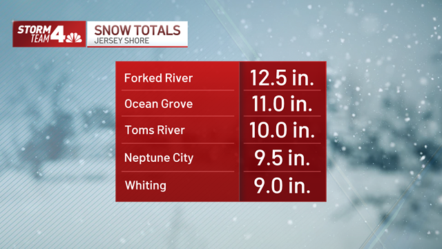 Early snow totals in NJ, NY, CT ... Forked River tops a foot ... Bay Shore 10"