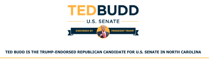 @RepTedBudd's Senate campaign emails (pic below). Leaning in on Trump endorsement. First campaign radio ad was on it. Club For Growth ad was on it: https://www.newsobserver.com/news/politics-government/election/article253939118.html …#ncpol#ncsen pic.twitter.com/RiCRI3fY29