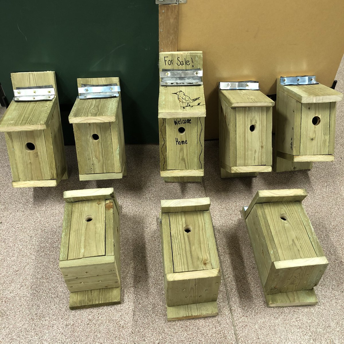 EcoCouncil bird boxes are coming together nicely. Next job is to get them in the trees before the birds start nesting.