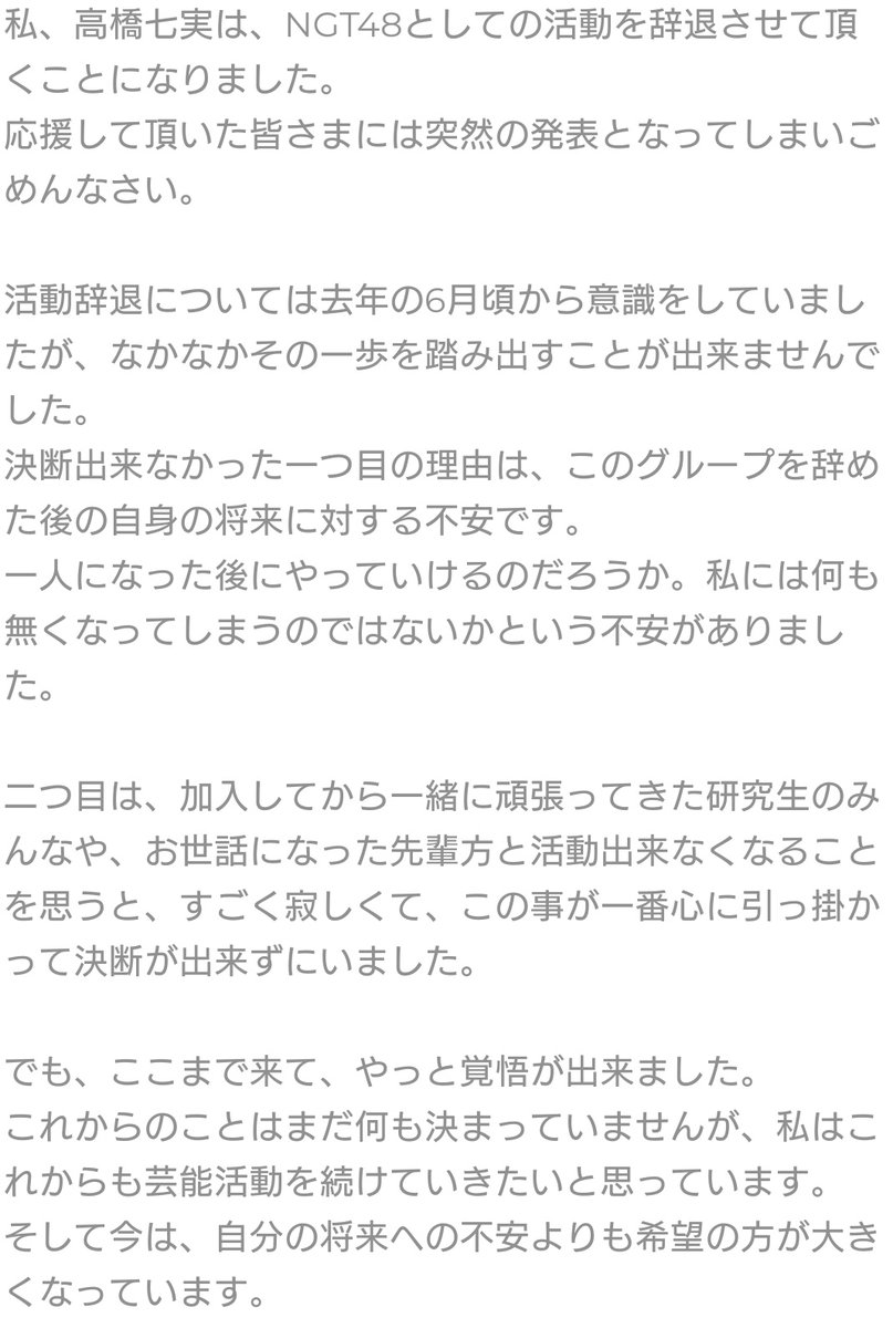 Geverifieerd account@official_NGT48 国内5つめの48グループとして新潟県に誕生したNGT48の公式ツイッター。今村支配人のもと、個性豊かな44名(県内出身19名)のメンバーが、女優の北原里英さんたち卒業生の想いを受け継ぎ、新潟を学び、その魅力や素晴らしさを全国に発信していくことを目標に活動していきます。「悦朗報」をお届けできるよう日々つぶやいて参ります。