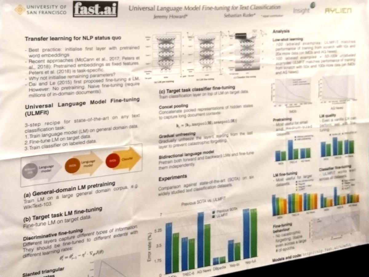 @seb_ruder 's " Universal language model fine tuning for text classification" definitely was one of the interesting posters today#ACL2018#NLProc pic.twitter.com/bmJJ1dwKsS