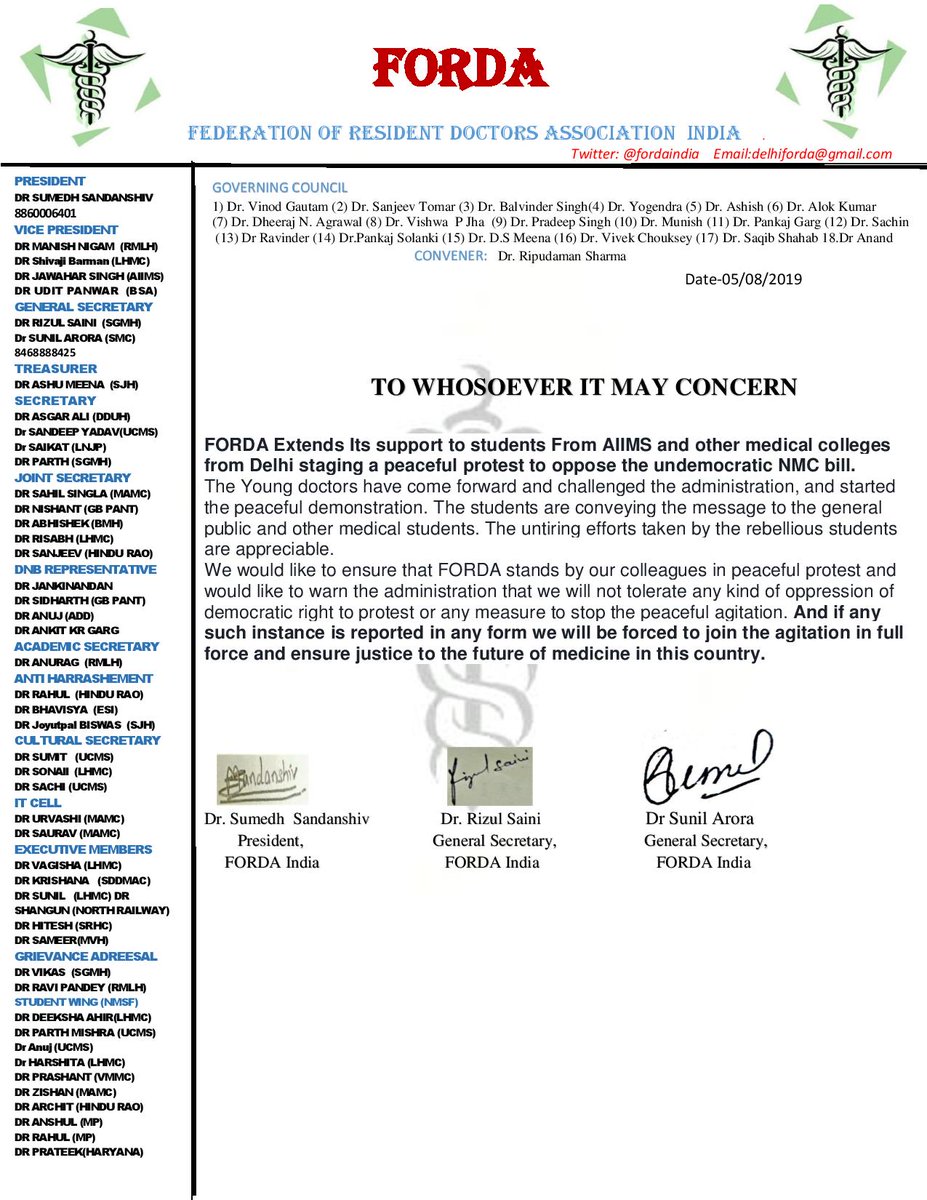 @FordaIndia@NMSF3@StudentsUnion7@drharshvardhan@MoHFW_INDIA@PMOIndia@rashtrapatibhvn#SayNoToNEXT#SayNoToNMCbill#NMCBill#BurnNMChttps://twitter.com/NMSF3/status/1158969304936697856 …