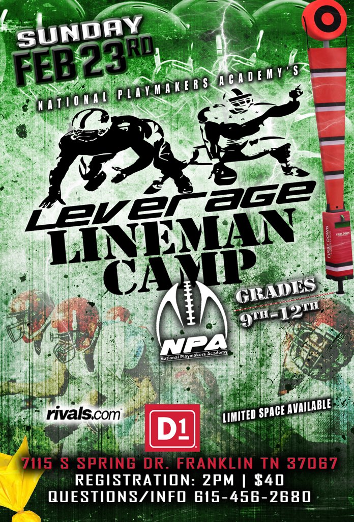 #NPA Presents .... Leverage Lineman Camp 2020 ** Come compete against some of the best talent this state has to offer & get better!! Comment below if interested!!#CSSpic.twitter.com/asfgqLfanR
