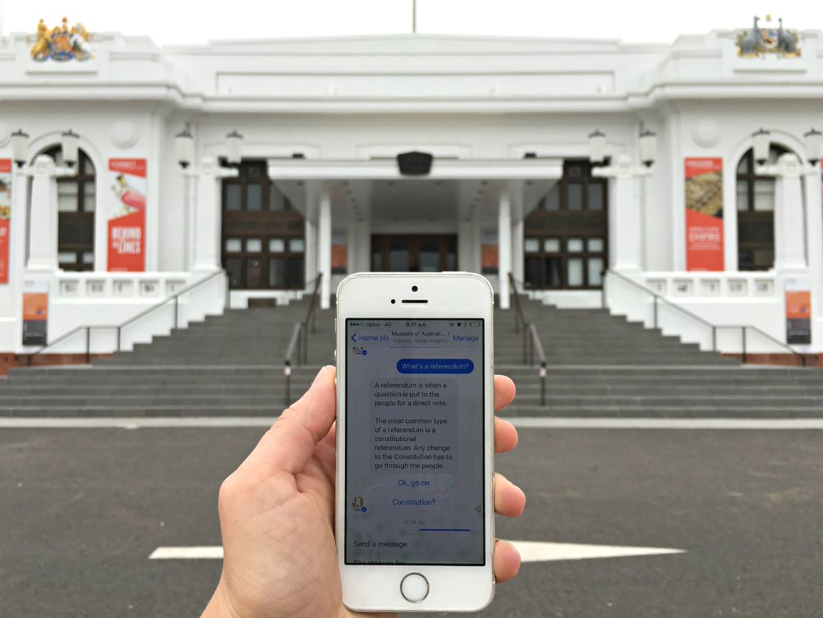 ? Get history in your pocket. Chat with us for the low-down: http://m.me/museumofaustraliandemocracy … #NRW2017