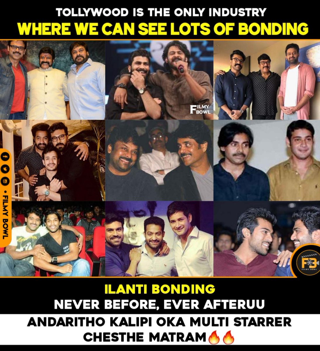 #Tollywood is the only Industry where we can see Lots of Bonding. ilanti Bonding... Never Before.. Ever Afteruu..#Chiranjeevi#NBK#Nagarjuna#venkateshdaggubati#MaheshBabu#PawanKalyan#Prabhas#RamCharan#NTR#AlluArjun#Sharwanand#Akhil Follow@FilmyBowlpic.twitter.com/Qi31P6UvJz