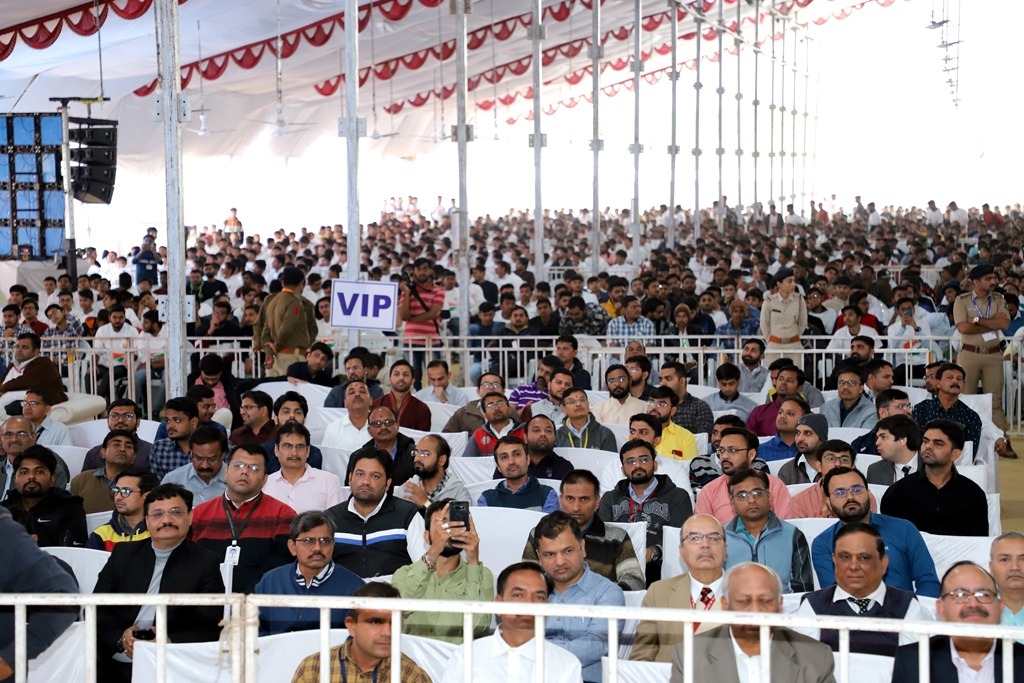 #NVD#National_Voter_Day_2020 માન. મુખ્યમંત્રીશ્રી ના અધ્યક્ષ સ્થાને આયોજિત યુવા સંમેલન કાર્યક્રમના પ્રથમ ચરણમાં અંદાજિત ૭૦૦૦ યુવાનો ઉપસ્થિત રહ્યા હતા. જેઓને શપથ ગ્રહણ કરવી જાગૃત મતદાર બનવા અપીલ કરાઈ.@CollectorRjt@CEOGujarat@CMOGujpic.twitter.com/k13YRBo0Sm