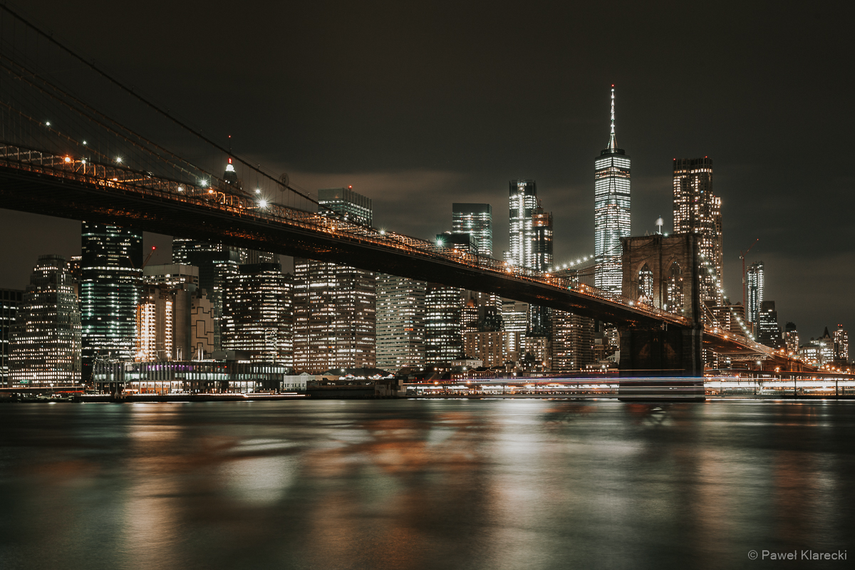 New York at Night. Widok na Most Brooklyński i Manhattan. Copyright ©2020 by Pawel Klarecki