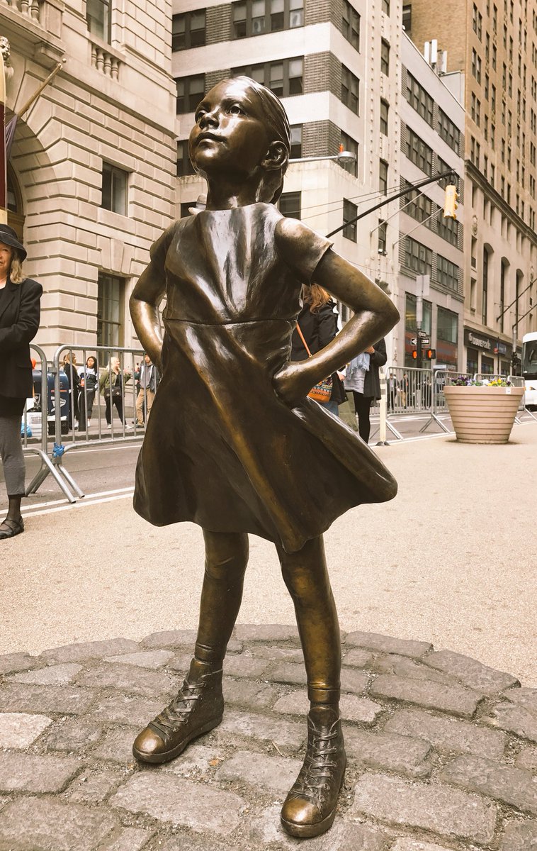 #FearlessGirl stands boldly in front of Wall Street’s Charging Bull. A brilliantly inspiring symbol of female strength, courage & empowerment in the face of challenge & intimidation. But#NYCMayorsOffice 1yr permit will expire very soon - now, more than ever, we need her to stay. pic.twitter.com/wic1D9R4Ja