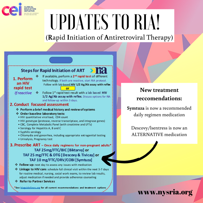 The new RIA guidelines by the Medical Care Criteria Committee of the AIDS Institute now include another one-pill regimen (Symtuza). For more details visit us at http://bit.ly/2GtHFaY