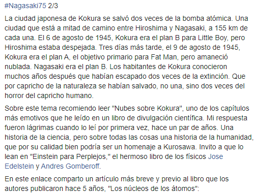 #Nagasaki75 2/3 La ciudad japonesa de Kokura se salvó dos veces de la extinción atómica. El 6 de agosto 1945, Kokura era el plan B, pero Hiroshima estaba despejada. El 9 de agosto de 1945, Kokura era el plan A, pero amaneció nublada. Nagasaki era el plan B.