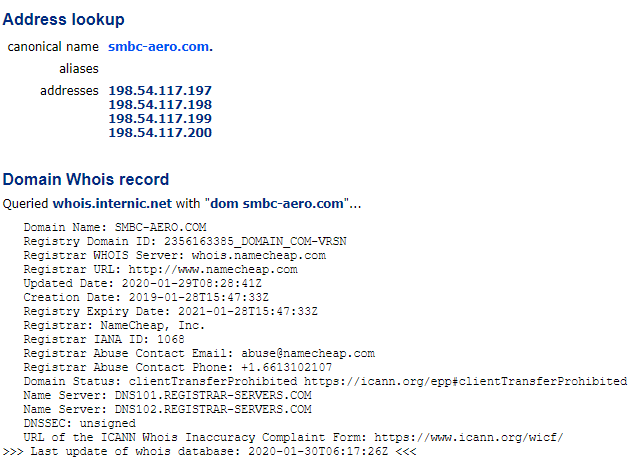 SMBC関連のドメイン登録情報です。 smbc-aero[.]com