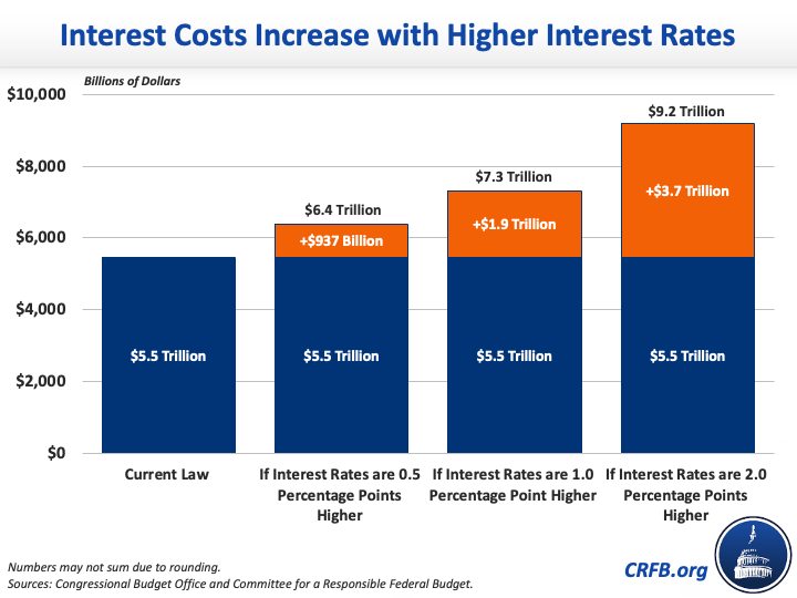 A one percentage point increase in projected interest rates would increase interest payments on the #nationaldebt by about $1.9 trillion through 2031.#FiscalStateOfTheNationpic.twitter.com/3PPkCYHLOr