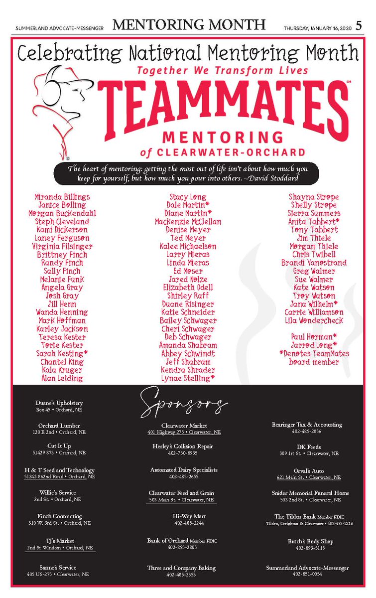 Thanks to everyone who serves as a mentor for the Clearwater-Orchard TeamMates chapter!
