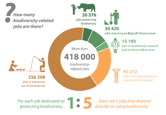 Each job protecting #biodiversity supports 5 other jobs that depend upon biodiversity@SANBI_ZA just launched the