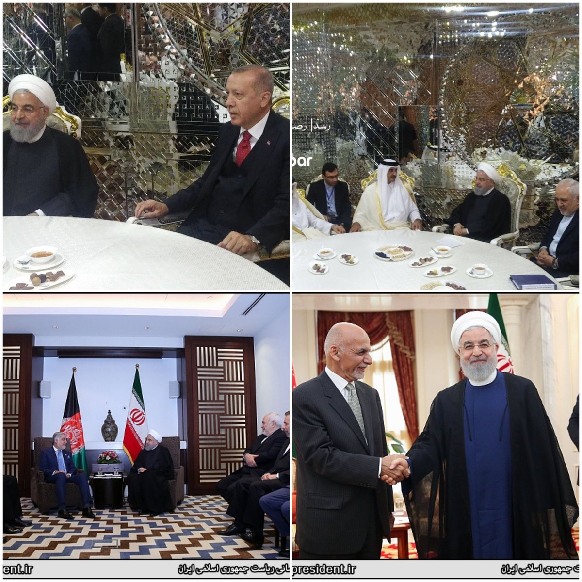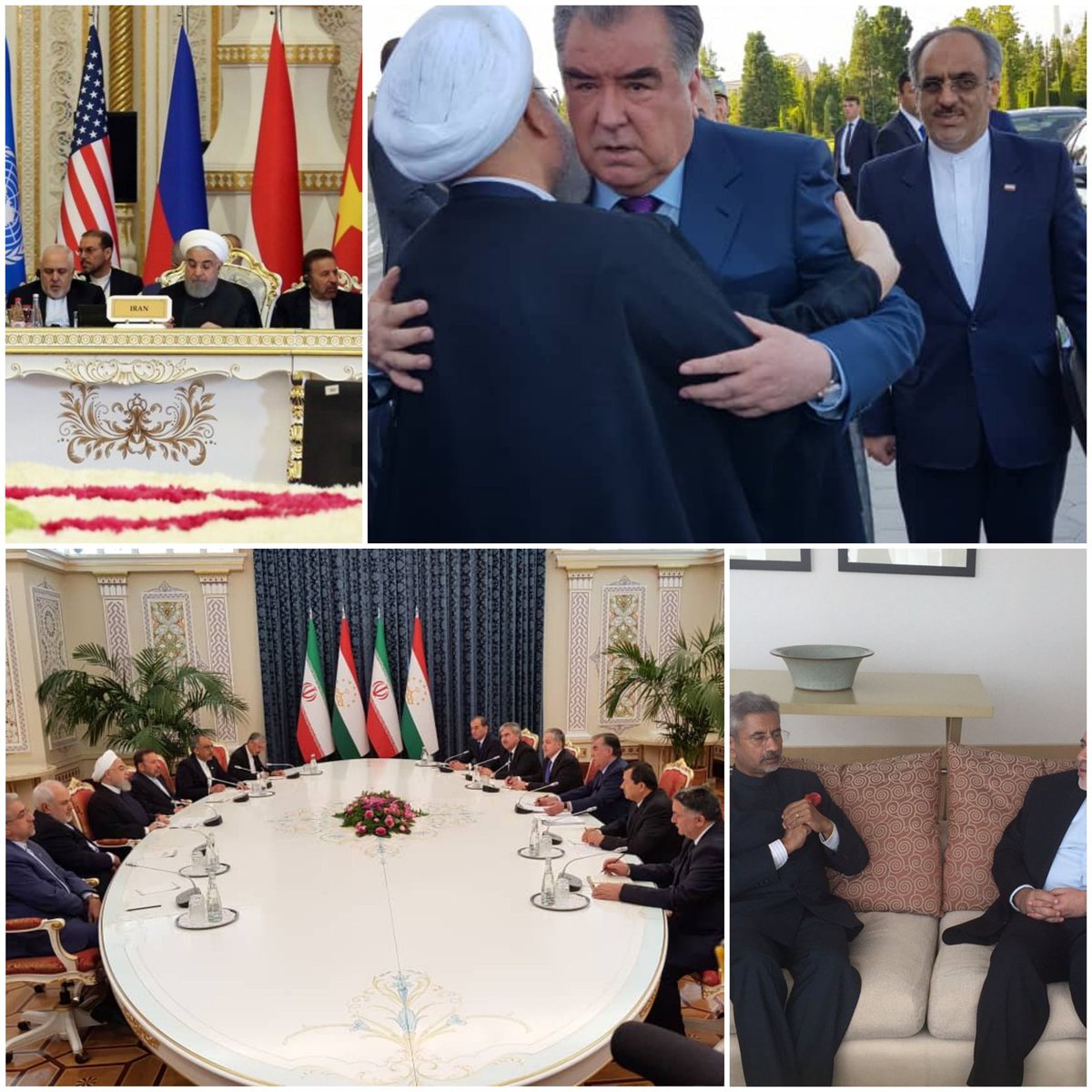 #Iran's active diplomacy continues: Excellent meetings bet. President@HassanRouhani & presidents of Tajikistan & Turkey and Emir of Qatar in Dushanbeh. Productive talks also held with Pres. & Chief Executive of Afghanistan. I had useful mtg w/ new FM of India.#NeighborsFirst pic.twitter.com/mX1REIeXis