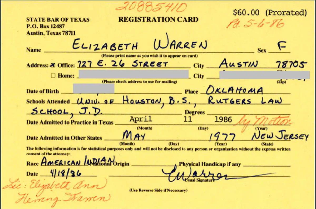 #NEVERWarren. Your false claims to be an American Indian woman of color for 2 decades is disqualifying! Add ethical violation of putting that on your state bar application! pic.twitter.com/aG7dum2F1V