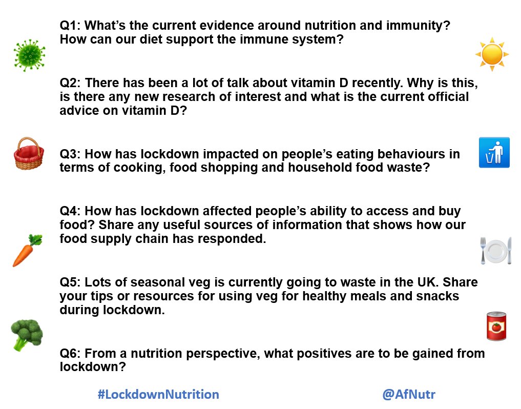 It’s your chance to discuss #VitaminD#immunity#foodsupply#foodwaste#seasonalveg#foodbanks#newevidence and more... All are welcome to join in