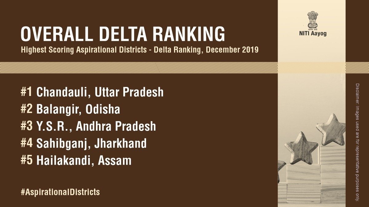 have imbibed the spirit of a #NewIndia that strives on prioritising development. Congratulations to the 5 most improved districts on#NITIAayog's Delta Ranking for December 2019!pic.twitter.com/ROkkyLXyJ9