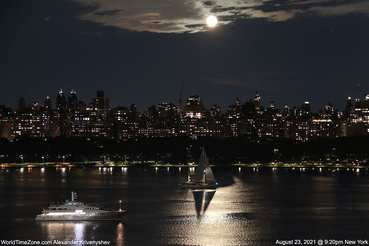 #NewYork captured this urban skyscape on Monday. He wrote: "Sailing along the Hudson River in the moonlight." We love these New York skyline photos.