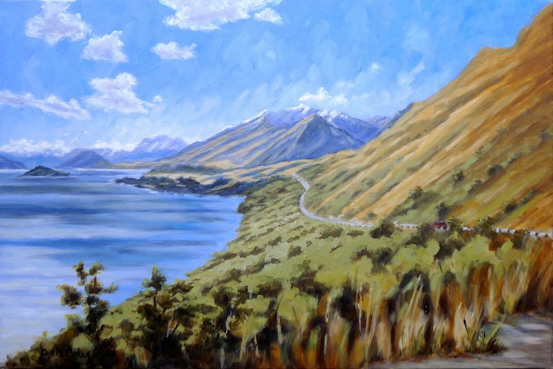 'Queenstown Road, New Zealand', 60x40cm, oil - I know this road very well having visited NZ many times over the years, painting this one made me smile :)