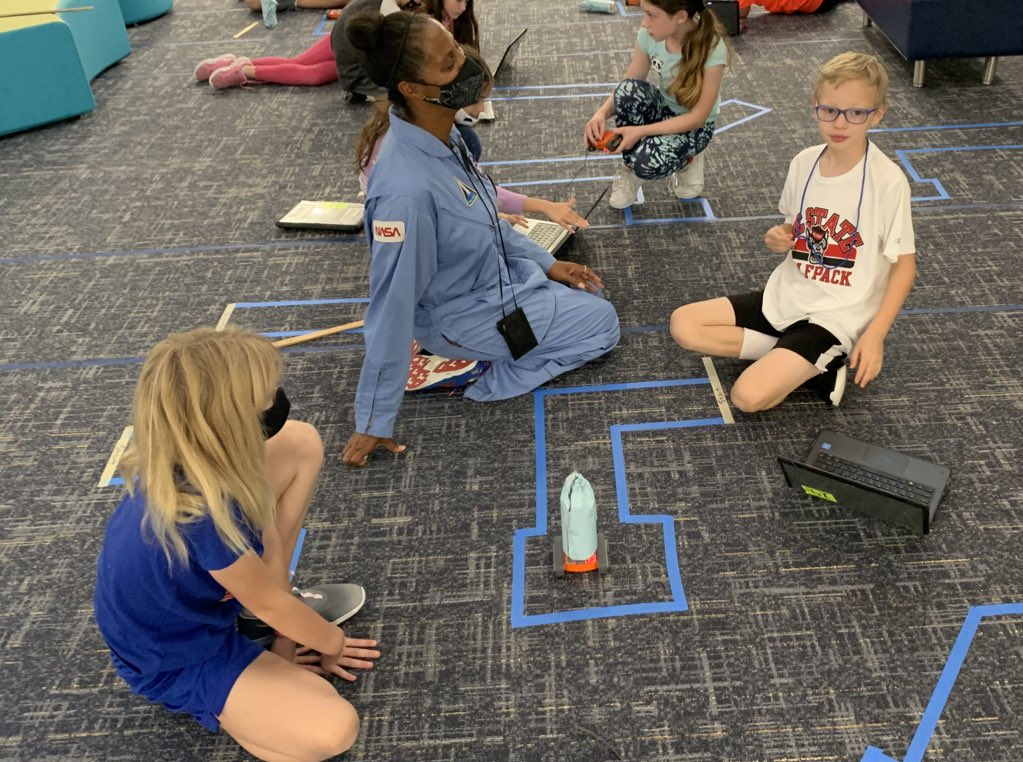 Mrs. Auzenne championing our STEM NASA connection with kids coding a transporter with its “rocket payload”.