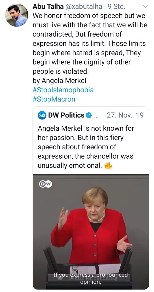 #Merkel's hateful speech where she rails unhinged against Freedom of Speech. Just like her Islamist brethren Merkel blames victims for "offending". Merkel even denies that Free Speech is threatened.#CharlieHebdo#SamuelPaty#NiceAttack pic.twitter.com/twXHMF7gxU